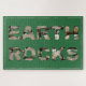 Um muro de pedra fornece o texto "EARTH ROCKS" com um fundo verde "terra". Acentuado com uma borda fina.