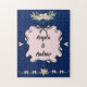 Exibindo um fundo azul, esta noiva de casamento e quebra-cabeça de noivo mostra seus nomes em uma linda exibição. Com um quadro de rico rosa e ornamentos florais. Compre o seu hoje!