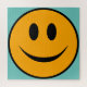 Este design apresenta uma imagem ao estilo emoji de um rosto sorridente. Esses tipos de rostos são frequentemente vistos em aplicativos de smartphone.