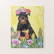 Quebra-cabeça Rottweiler Cão com Primavera de Flores