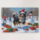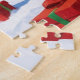 Quebra-cabeça Rough Collie correndo em neve com chapéu de Natal