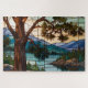 Quebra-cabeça Rustic mountain range landscape stain glass