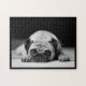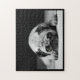 Fotografia branca e preta de um pãozinho adorável com olhos castanhos comoventes.