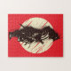 Legal design com ilustração de um samurai com salpicos de tinta em preto sobre uma lua de cheio branca fatiada.