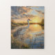 Esta trabalho de arte espetacular mostra uma grua de Sandhill a ser graciosamente colocada contra um vibrante céu ensolarado, com matizes quentes refletindo sobre a água tranquila. As cores ricas e a elegante silhueta criam uma cena serena e majestosa, perfeita para decoração e artesanatos inspirados na natureza.