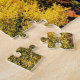 Os pináculos crescentes da basílica em Hubertus, WI aumentam acima da folha brilhante do outono em uma fotografia original por Zenpropix