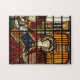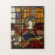 Detalhes incríveis nessa imagem fotográfica de uma janela de vidro manchado com a Santo Cecilia - o santo protetor da música, com órgão de pipe e cherub/criança segurando harpa.