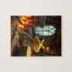 Esta quebra-cabeça de serra apresenta um sapo tomando café perto do fogo.