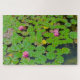 Mais de uma dúzia de sapos ficou escondida entre os lírios de água desta lagoa. Você consegue identificar todos?