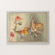 Um sprite de inverno é visto em pé na neve manipulando dois marionetes. Abaixo: "Feliz Natal e Feliz ano novo".