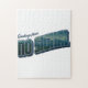Um design tocável apresenta a frase "Saudações de SEM SINAL" com imagens de paisagem dentro negrito, letras de bloco.