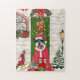 O Natal do Cachorro Schnauzer sentado do lado de fora da casa decorada com coroa de Natal, a árvore de Natal é uma ideia perfeita de presente de Natal para amantes de cães.