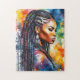 Ein kreatives Puzzle mit einer schwarzen Frau, gemalt im Wasserfarben-Stil.