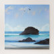Serenidade, paisagem tranquila com nuvens suaves e uma praia arenosa.
