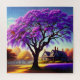 Foto de um design de tinta a óleo é uma maravilhosa árvore de Jacaranda florescente com uma antiga terra ao fundo