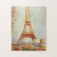 Um quebra-cabeça clássico bonito que caracteriza a torre Eiffel, pintada pelo pintor francês Georges Pierre Seurat do cargo-impressionista.