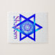 A estrela de David, o símbolo de Israel e as pessoas judaicas, são o foco central para este design azul e roxo vibrante que caracteriza Shalom--a palavra hebréia para a "paz.