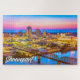 Esta vibrante quebra-cabeça de serra mostra uma fotografia de Shreveport, Louisiana, no pôr do sol. Esta quebra-cabeça faria uma maravilhosa ideia de presente para amigos, familiares e colegas.
