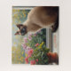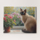 Quebra-cabeça Siamese Cat in the Window with Garden View