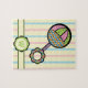 Doce e encantador, este chocalho colorido é decorado com rosa circo-inspirado e segmentos pontilhados verde e latticework azul e alaranjado no chocalho principal, as bolinhas amarelas no punho roxo, e segmentos brilhantemente coloridos como o vitral no aperto dado forma flor. As listras brandamente amarelo, azul, e no rosa criam um fundo delicado para contrastar o chocalho vibrante. Personalize a inicial na forma da flor para fazer este presente original para seu pequeno. Seja certo verificar para fora a coleção simplesmente doce do chocalho do cheio para ver se há presentes e produtos maiores para um chá de fraldas ou pequena em sua vida.