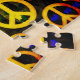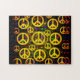 O amarelo, o ouro, e os sinais de paz matizados vermelho com lotes de corações coloridos do arco-íris espalharam a mensagem pacífica astuta e claramente.