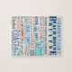 Entretenha-se e decore sua casa costeira com esta quebra-cabeça personalizada de "regras de casa de praia da família". Cheio de palavras engraçadas em tons de azul, verde aqua, coral, vermelho e marrom arenoso, este trabalho de arte caprichoso fará sua família e seus convidados rirem. O fundo tem uma textura de madeira clara (impressa).