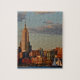 A skyline da Nova Iorque. Uma navigação do barco de vela pelo Empire State Building em uma noite do verão imediatamente antes do crepúsculo