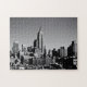 Uma foto preto e branco lindo da skyline da Nova Iorque que caracteriza o Empire State Building, construção de Chrysler e as outras construções clássicas que compo a skyline de Manhattan do Midtown.
