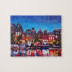 Quebra-cabeça Skyline de Amsterdão com o canal na noite