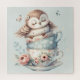 Quebra-cabeça Sleeping Owl in Stacked Floral Teacups