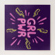 Quebra-cabeça Slogan feminista do poder feminino, fundo violeta.