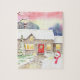 Baseado na minha pintura a aquarela, Snowy Cottage, uma pintura de um belo quadro de inverno de uma casa de telhado Inglês coberta de neve, com uma conífera decorada na frente da casa e um bonitinho bonitinho bonitinho a saudar no primeiro plano. A cabana estava completamente iluminada como dentro, brilhando com o calor da estação festiva. Personalizável no Zazzle com seu próprio texto para um design personalizado. Veja na minha loja os itens correspondentes!