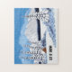 A puzzle with a beautiful winter scene including snowy mountains, rustic cabin and snow covered evergreens. The image and text can be personalized. Original artwork by W.B.