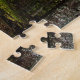 Desafiando o quebra-cabeça apresentando uma fotografia original de um raio de luz solar brilhante atravessando as árvores de uma floresta montanhosa nos Alpes Dolomites, na Itália norte,