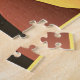 Quebra-cabeça no retrô, montanhas do deserto minimalistas no pôr do sol, em tons de laranja de ferrugem profunda, ouro amarelo e marrom