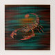 As ondulações de água por baixo são iluminadas com tons refletores de cor do sudoeste deste poderoso rei Escorpião caminhando sobre a água. Tons de paleta colorida de azul e verde-turquesa, preto, amarelo, laranja, ouro e vermelho.