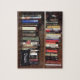 Duas estantes enchidas com os livros e um travesseiro ideal