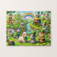 This whimsical and vibrant "Quirky Irish Animal Festivity A Playful Celebration of Luck and Charm" jigsaw puzzle features a lively gathering of cartoon Irish animals, including sheep, cows, and cats, dressed in playful St. Patrick’s Day costumes like tiny leprechaun hats and shamrock bow ties. Set against a lush green landscape, the scene is full of charm with rainbows, pots of gold, and a prominently placed four-leaf clover symbolizing good fortune. The intricate details and joyful atmosphere make this jigsaw puzzle a delightful celebration of Irish folklore and fun, perfect for families, kids, and anyone who loves the playful spirit of St. Patrick’s Day.