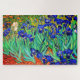 Vincent Van Gogh Irises. Pintado em 1889, é uma das pinturas que criou no Santo Paul-de-Mausole hospício em Santo-Rémy-de-Provence, na França. É uma pintura a óleo. Esta pintura de óleo paisagístico de arte retrata um campo de plantas de flores de íris. Vincent Van Gogh era um artista famoso. Ele era um pintor impressionista holandês.
