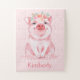 Quebra-cabeça Suíno Rosa de Aquarela Adorável com Nome