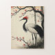 Sumi-E Red-Crowned Crane Puzzle – Japanese Ink Painting with Bamboo and Blooms