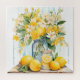 Flor vibrante enfiada num pote, cercada por limões frescos. Uma mistura deliciosa de beleza e zest da natureza.