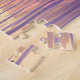 Quebra-cabeça brilhante com meu trabalho de arte de computador de um golfinho saltando da água em frente a um grande pôr do sol amarelo.