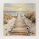Entrar em serenidade com esta pintura de aquarela maravilhosamente detalhada que mostra um passeio de madeira pitoresco que conduz diretamente a uma praia pacífica no pôr do sol. Cercado por dunas, conchas e gramíneas suaves, esta cena costeira evoca tranquilidade e relaxamento. Ideal para entusiastas de praia, fãs costeiros de decoração, proprietários de casas e amantes de paisagens serenas.