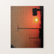 Uma foto do Kansas Sunset com uma linha elétrica, caixa de correio, da silhueta. Isso é em um QUEBRA-CABEÇA. Este é ao norte de Hutchinson Kansas USA, no país.