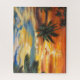 "Stunning Tropical Sunset II", por Carolee Vitaletti. Possui um pôr do sol contra árvores e água na praia.