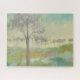 Pista de árvore II por Jennifer Goldberger. Apresenta árvores em cores mudas contra um fundo verde.