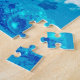 Surfboarder com palma e ondas na prancha azul do fundo, surfando, surfboarder, de "esporte água", verão, do "esporte verão", divertimento, mar, oceano, azul