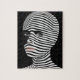 Arte gerada por IA de uma face surreal com listras pretas e brancas e lábios de cores naturais