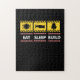 Coma e durma e crie e repita. Crianças mestras perfeitas que adoram brinquedos criativos e que constroem tijolos coloridos para hobbies e diversão Também são boas para a festa de construção de blocos e o eterno otimista que acha que tudo é incrível com o efeito gráfico e de texto do bloco de construção.